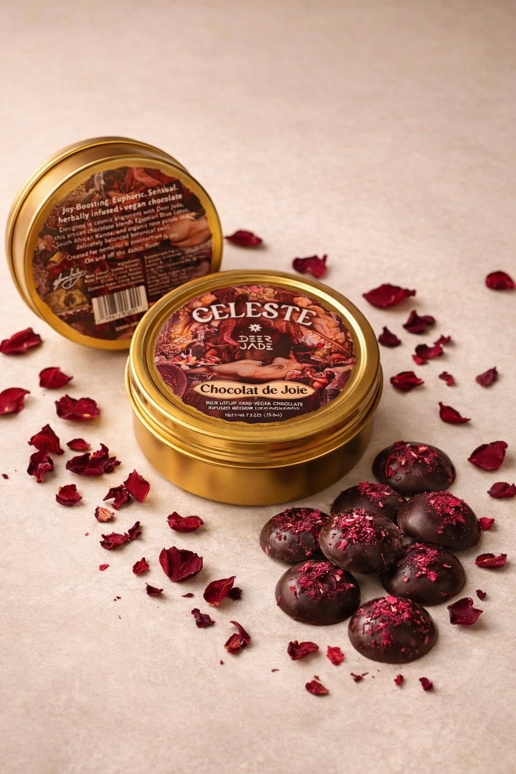 This collaboration is for those seeking elevated mood, emotional openness and sensual presence. Whether you’re creating, connecting or celebrating, Chocolat de Joie x Deer Jade is designed to amplify joy and deepen shared moments. - What are the key ingredients, and how do they work?